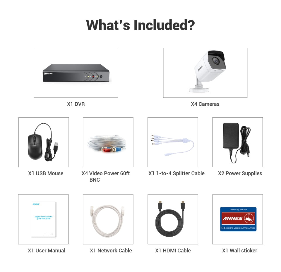 ANNKE 4CH 5MP Lite HD Video Security System 5IN1 H.265+ DVR With 4X 5MP Bullet Outdoor Weatherproof Surveillance Camera CCTV Kit