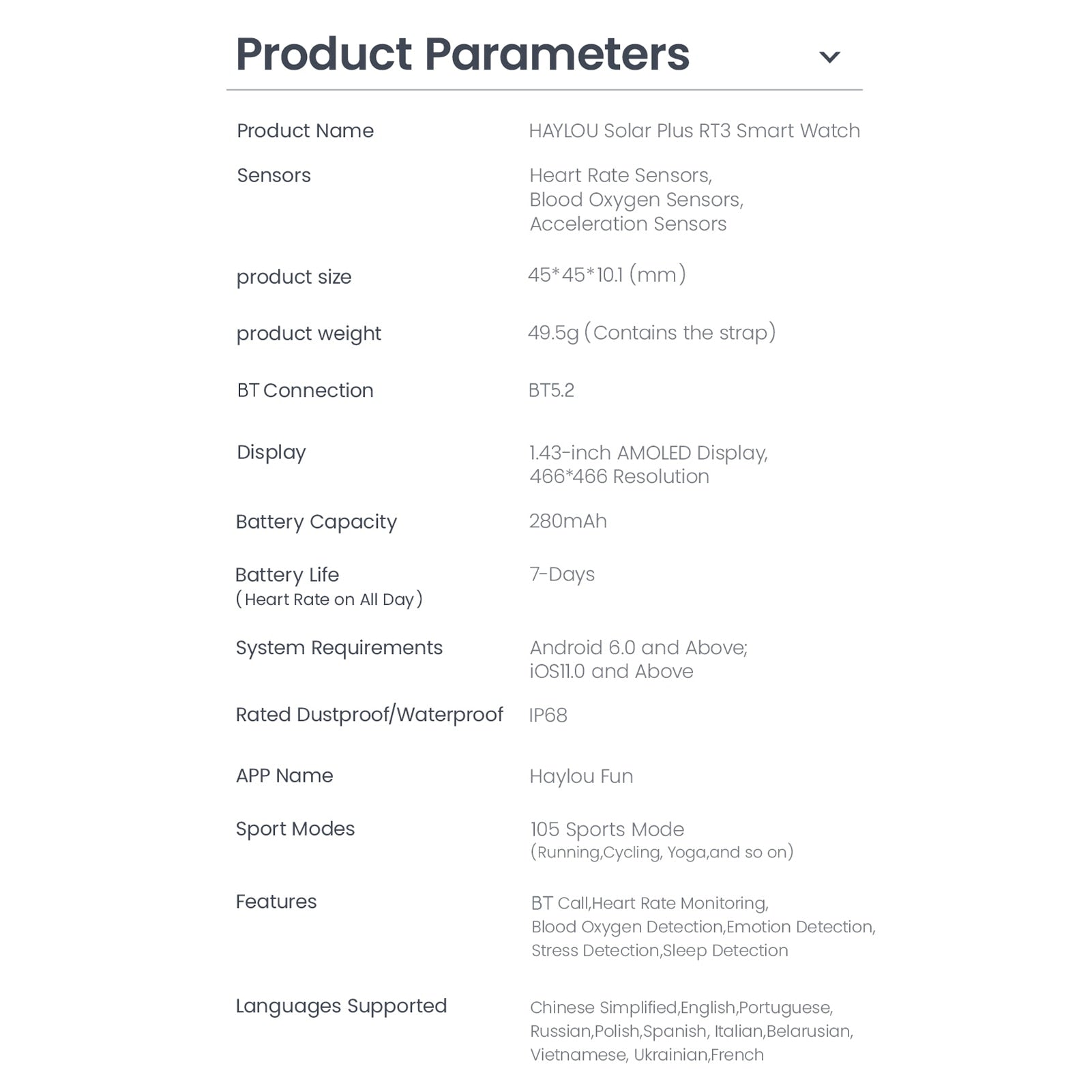 Waterproof HAYLOU Solar Plus RT3 Smart Watch